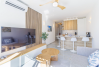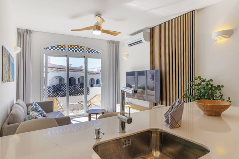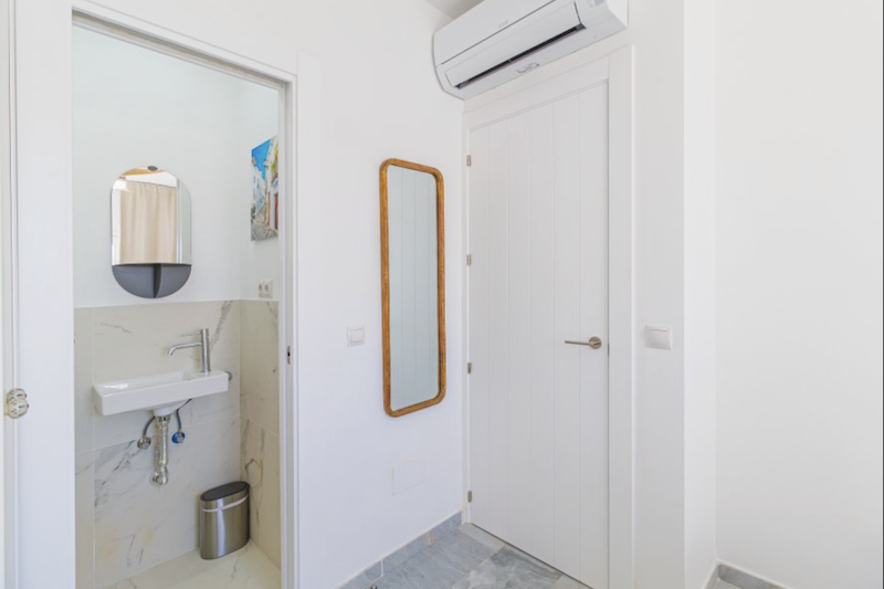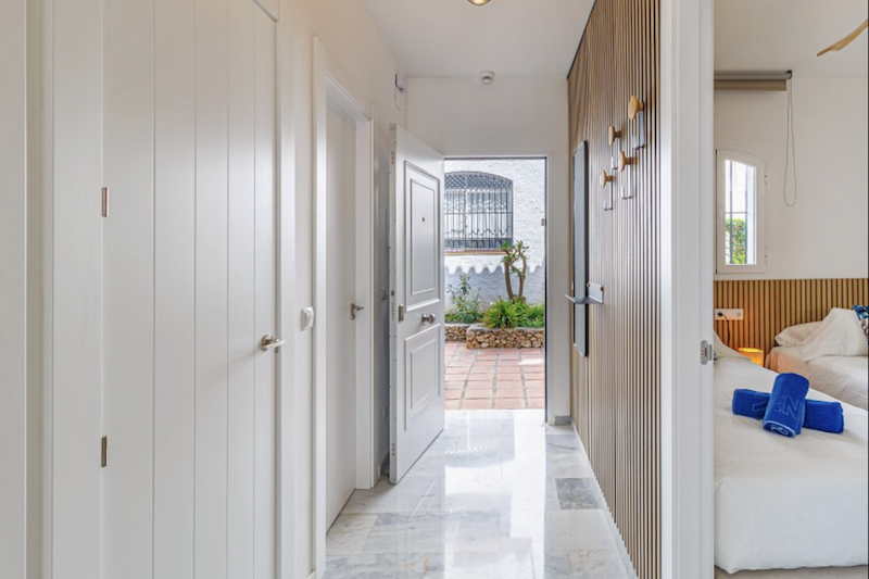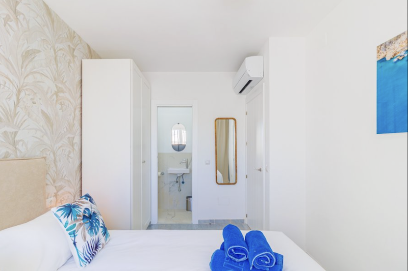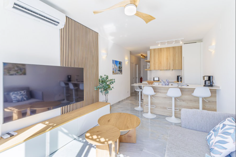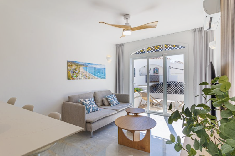 This Verano Azul 21 apartment in Nerja is a modern recently renovated apartment that combines style and comfort. It features two bedrooms, one of them with an en-suite restroom. There is a modern bathroom with a walk-in shower. The bright living room opens onto a terrace, perfect for enjoying the outdoors. The open-plan kitchen with island is fully equipped, ideal for sharing moments in good company. The apartment is fitted with air conditioning and ceiling fans in all rooms, ensuring comfort throughout the year. The community Verano Azul offers a swimming pool with access throughout the year. Free WIFI and Smart TV with international channels.